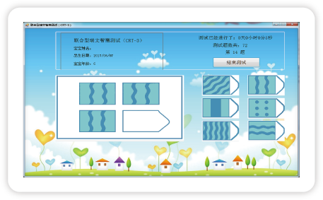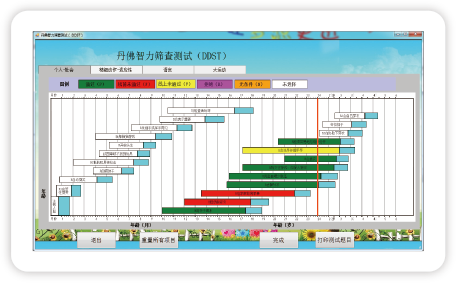 系統通過兒童常用的權威量表,簡單、快速的評估分析兒童各方面智力發展情況,客觀反映個體各方面能力,能夠在較短的時間內篩查出在生長發育或智力方面有問題的兒童,并為兒童提供出有針對性地指導建議。智力測驗是通過一定的測量工具和手段來衡量人的智力水平高低的一種科學方法,它可以計算出與之相對應的年齡,稱之為心理年齡,智商就是用心理年齡除以生理年齡而求得的。