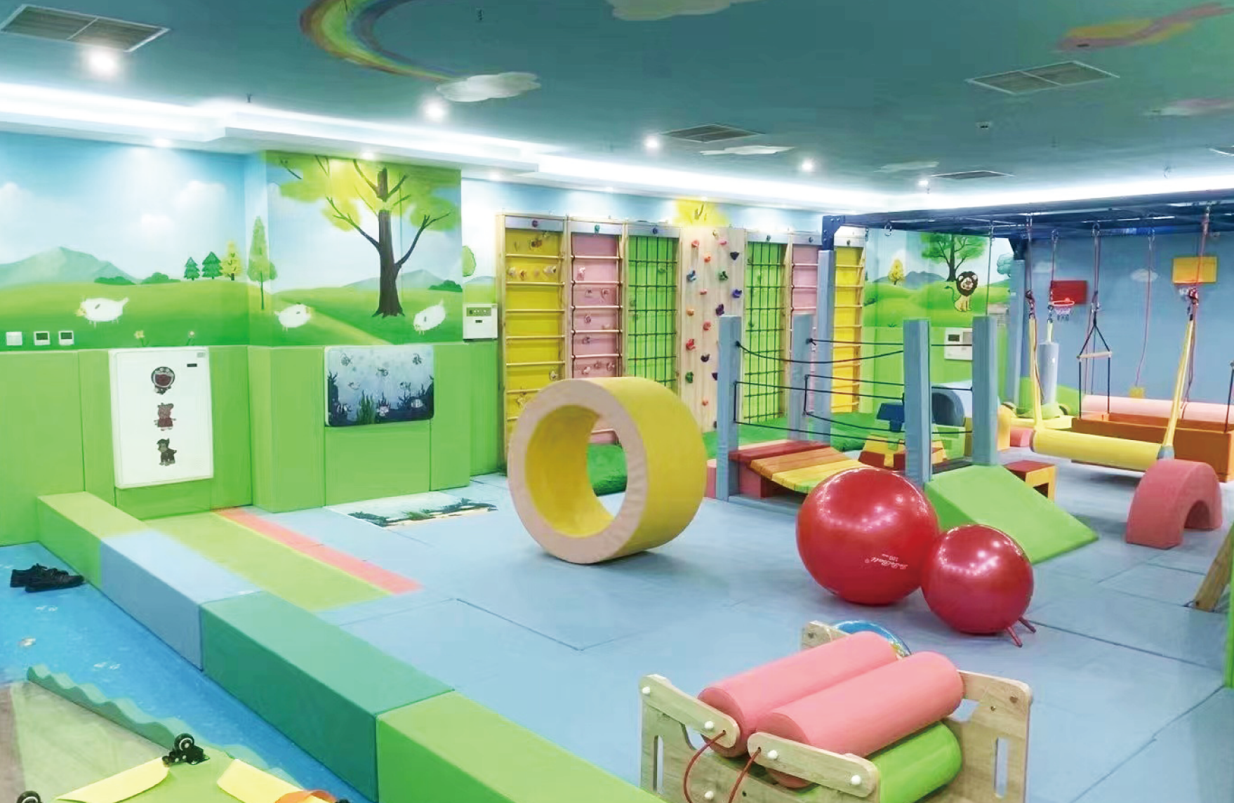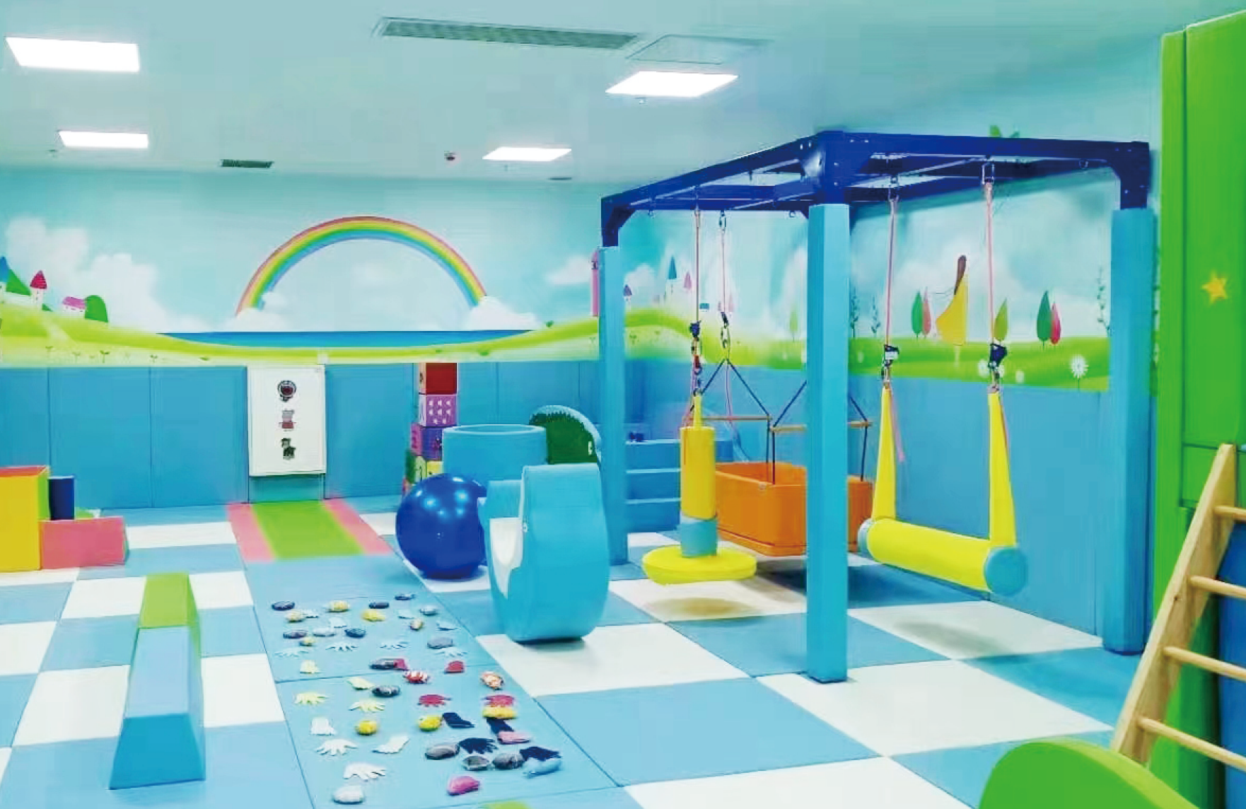 感統(tǒng)訓練教室是基于學生的神經(jīng)需要,引導對感覺刺激作適當反應的訓練,提供前庭(重力與運動)本體感覺(肌肉與感覺)及觸覺等刺激的全身運動,改善腦處理感覺資訊與組織,并構(gòu)成感覺資訊。促進幼兒聽覺、視覺、觸覺、本體感覺、前庭功能知覺的發(fā)展,提高感覺統(tǒng)合能力,促進幼兒身體正常發(fā)育和機能協(xié)調(diào)地發(fā)展,提高幼兒力量、靈敏、平衡等身體素質(zhì)。